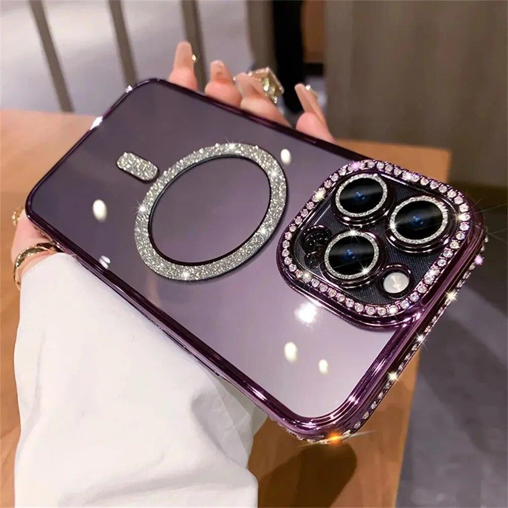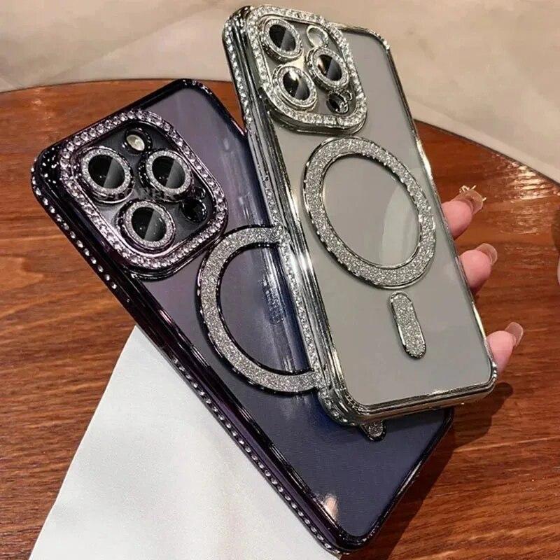 Роскошный прозрачный чехол Magsafe с бриллиантами для iPhone 15 14 13 12 11 Pro Max Plus, противоударный мягкий чехол с магнитной беспроводной зарядкой