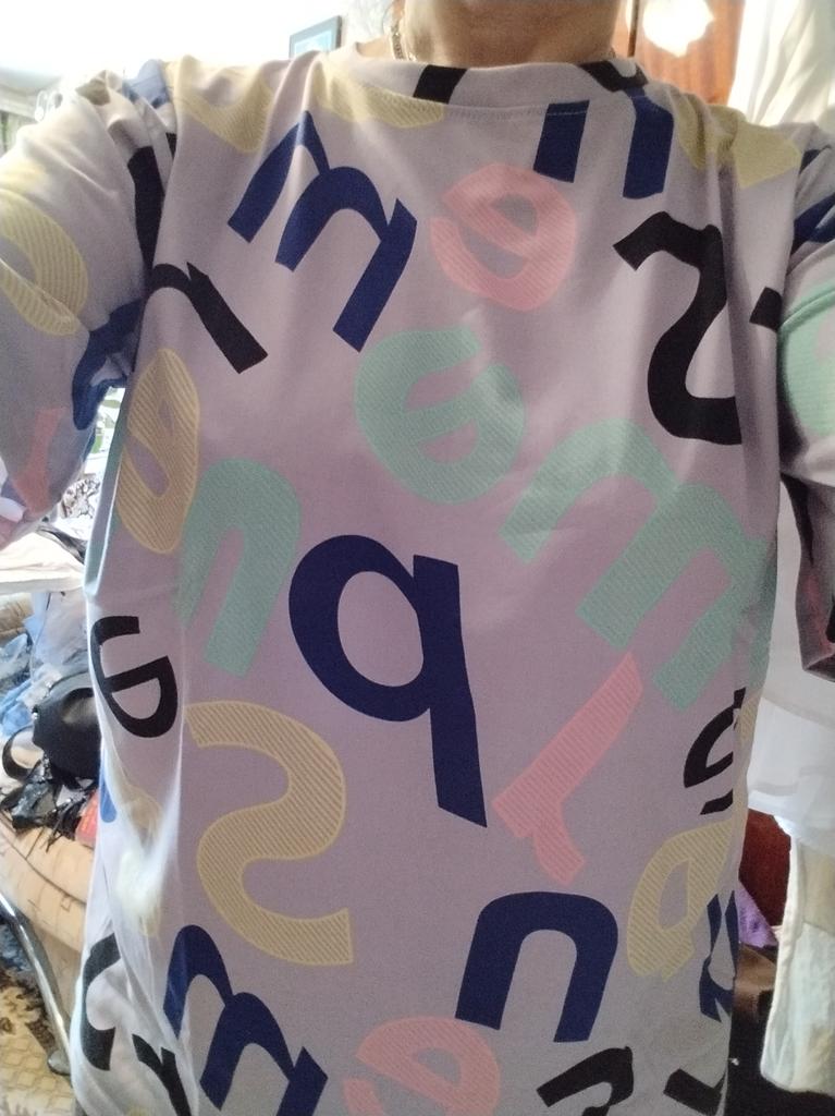 Футболка очень симпатичная, качественная и подошла на о/г 112. Но с пятнами! А товар я рекомендую: вещь сто́ящая. Службе поддержки большое спасибо за частичный возврат!