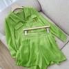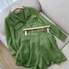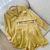 Весна-лето, однотонный короткий комплект, женские простые повседневные рубашки с длинными рукавами, шорты, комплекты из двух предметов, темпераментная женская одежда