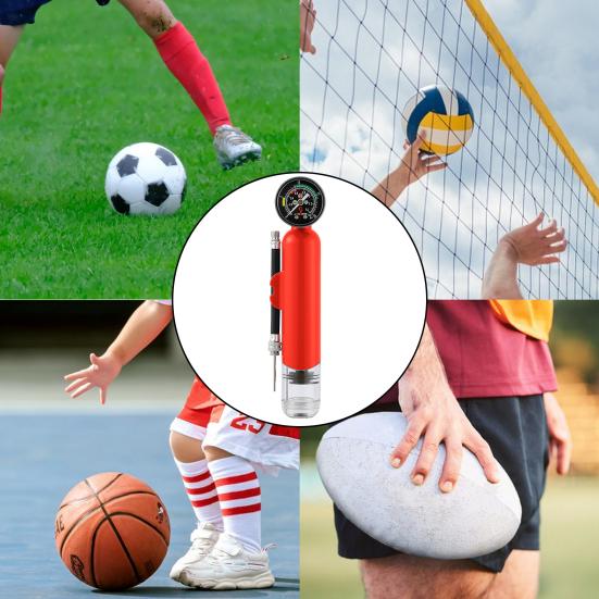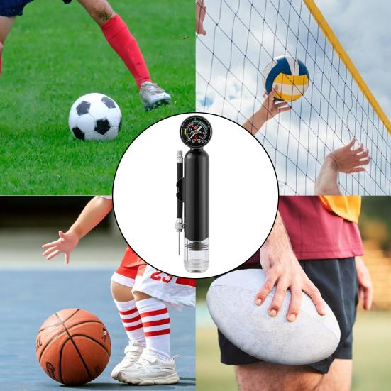 Встроенный циферблат отображает давление воздуха в реальном времени, что позволяет контролировать давление во время накачки.. Его практичный дизайн позволяет легко и удобно надувать футбольные, волейбольные, баскетбольные мячи и даже воздушные шары..