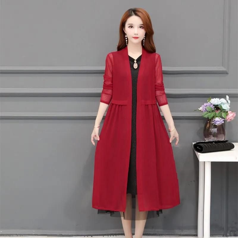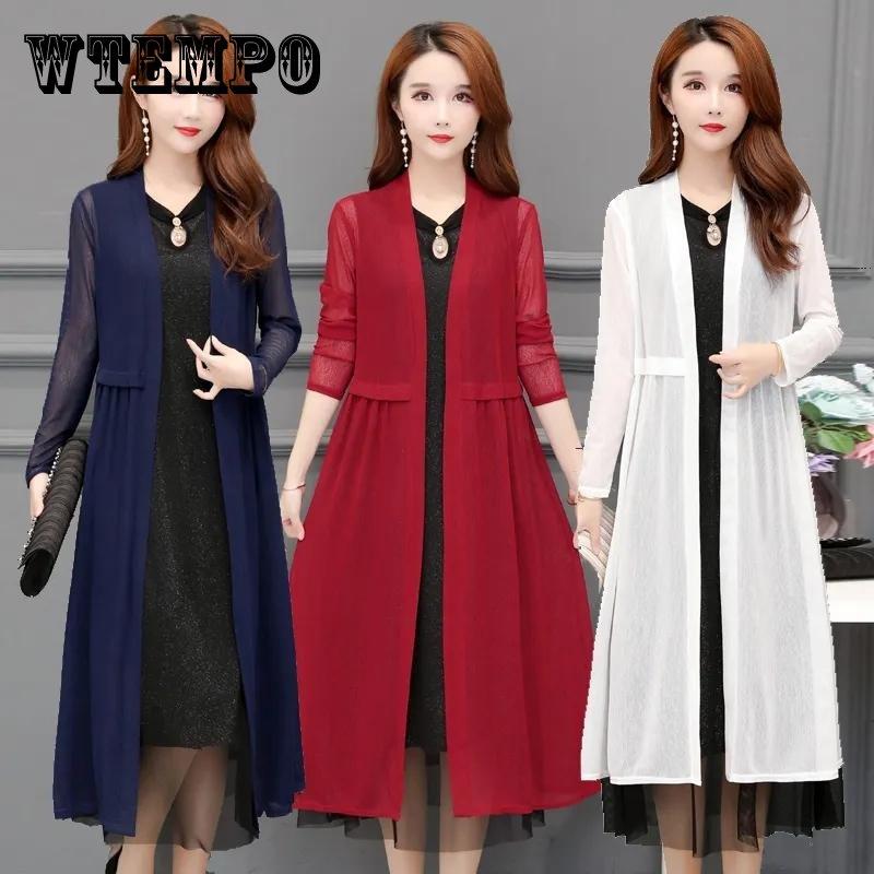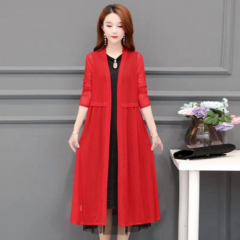 Летняя кружевная солнцезащитная шаль для женщин средней длины выше колена, свободный и тонкий внешний кардиган, солнцезащитное пальто