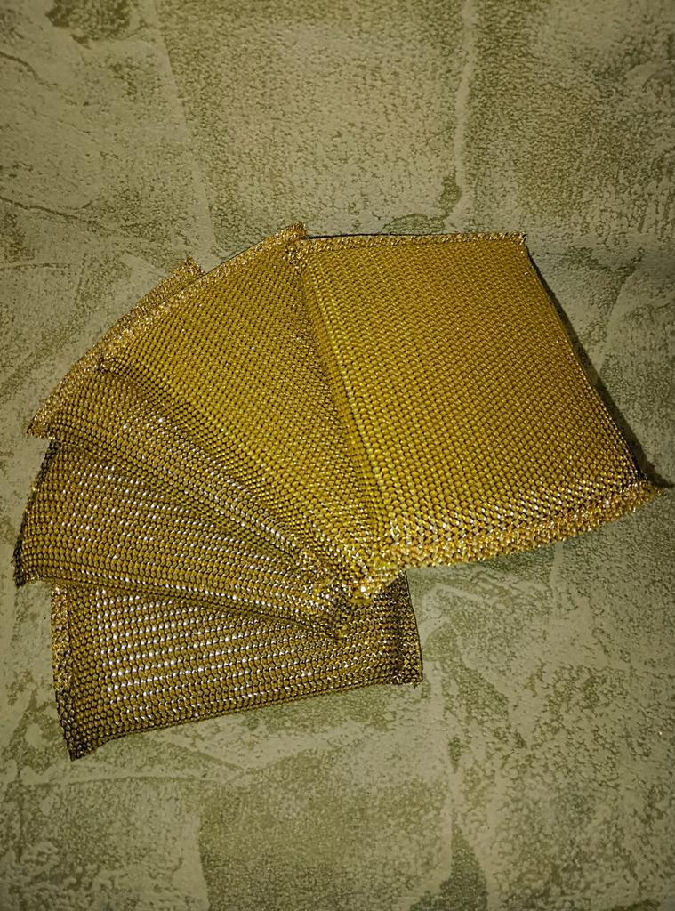 Друзья💞, набор золотистых губок для мытья посуды от магазина "Household Good". Выбор цвета. 5 штук. Размер: 13,5×9×1,5 см. Внутри пароллон. Сверху металлическая проволока. Упаковка: 2 пакета. Доставка: 22 дня в Карагандинскую область. Активно рекомендую👍