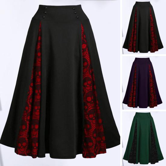 Женская юбка на Хэллоуин с высокой талией, винтажная вампирская косплей, средневековый череп с принтом, трапециевидной формы, свободный подол, зашнуровать, регулируемая талия, кружевная лоскутная юбка-миди — купить товар онлайн с бесплатной доставкой по всему миру!