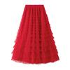 Женская юбка трапециевидной формы с высокой талией, большой распашной оборкой, сплошной цвет, разбросанный подол, плиссированная лоскутная однотонная юбка макси с эластичной резинкой на талии в стиле принцессы