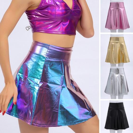 Женская клубная юбка трапециевидной формы из глянцевой поверхности из искусственной кожи со свободным подолом, эластичной талией и высокой талией, плиссированная, мягкая мини-юбка для коктейльной вечеринки — купить товар онлайн с бесплатной доставкой по всему миру!