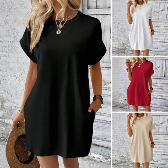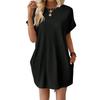 Стиль: Ощутите простоту и элегантность в этом однотонном женском платье с классическим круглым вырезом, короткими рукавами и удобными карманами для дополнительной функциональности.. Сдержанный дизайн воплощает вневременной стиль, подходящий для различных случаев.