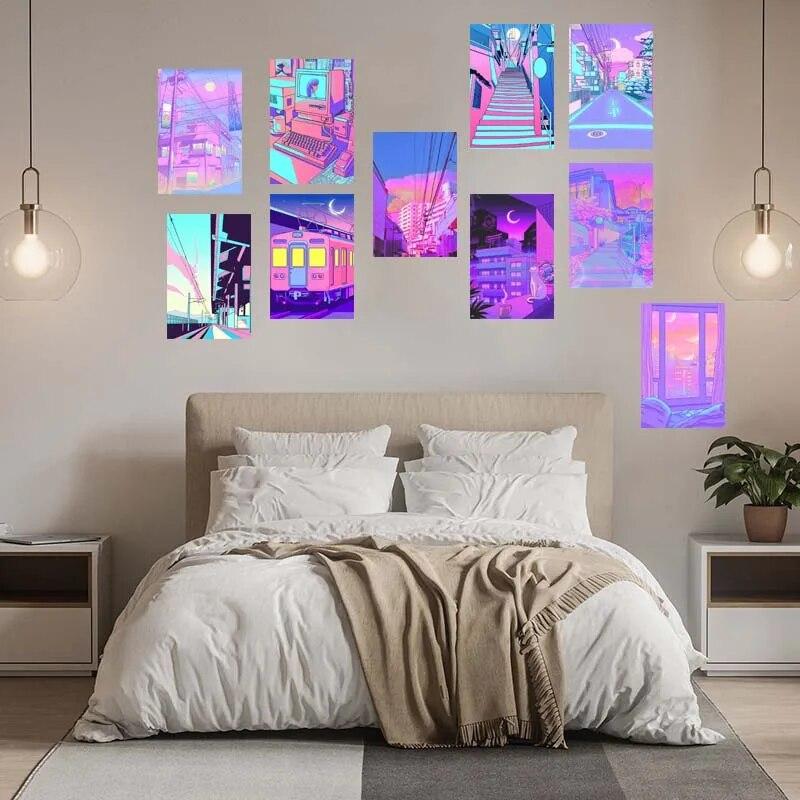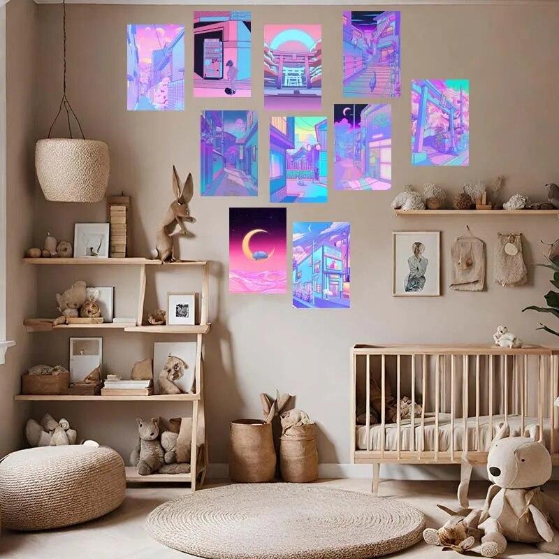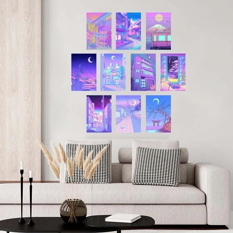 10/30 шт., постер с уличным пейзажем, открытка «сделай сам», розовый настенный набор для коллажей, эстетический кот, художественная иллюстрация, декор в общежитии, гостиной