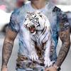 Футболка с изображением тигра, мужские рубашки с 3D принтом животных, летние мужские пуловеры с короткими рукавами, топы большого размера, футболки, мужская одежда