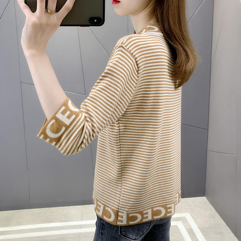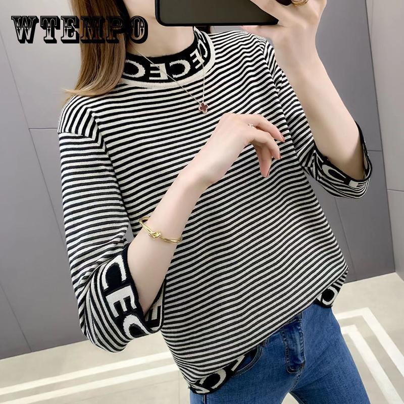 Тонкий рукав три четверти из мерсеризованного хлопка с буквенным принтом, полуводолазка, свитер, футболка, топ для женщин, весна и осень, корейский