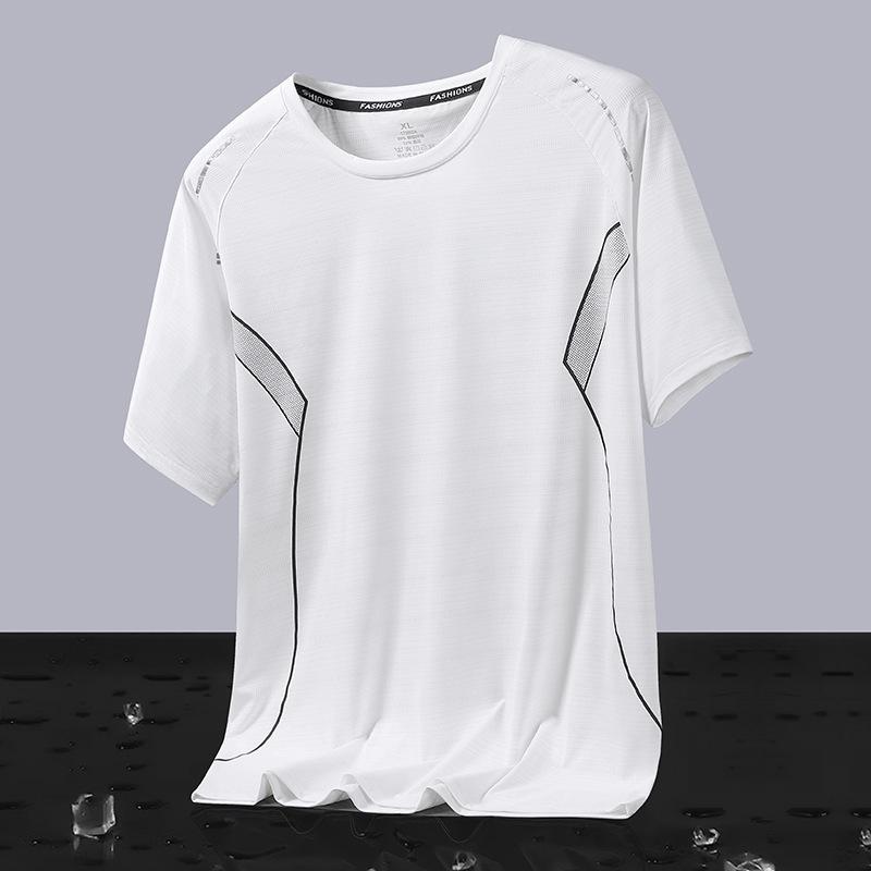 Футболка с короткими рукавами, спортивная мужская быстросохнущая футболка, дышащий костюм из ледяного шелка для фитнеса, повседневная свободная футболка