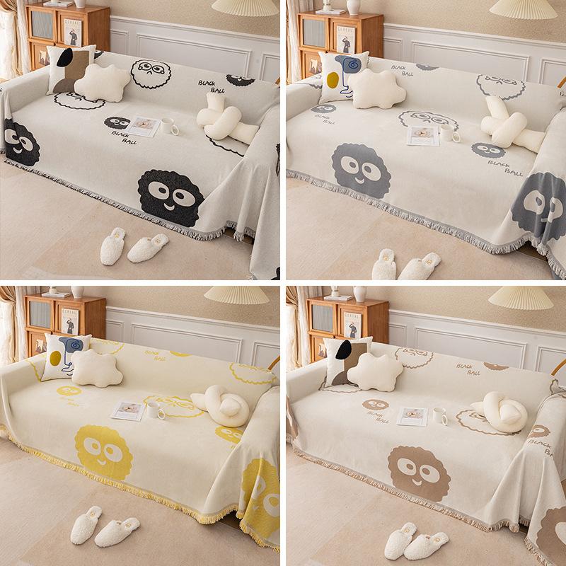 Чехол для дивана из синели, чехол для диванной подушки с мультяшным угольным шаром, универсальное полотенце на все сезоны.