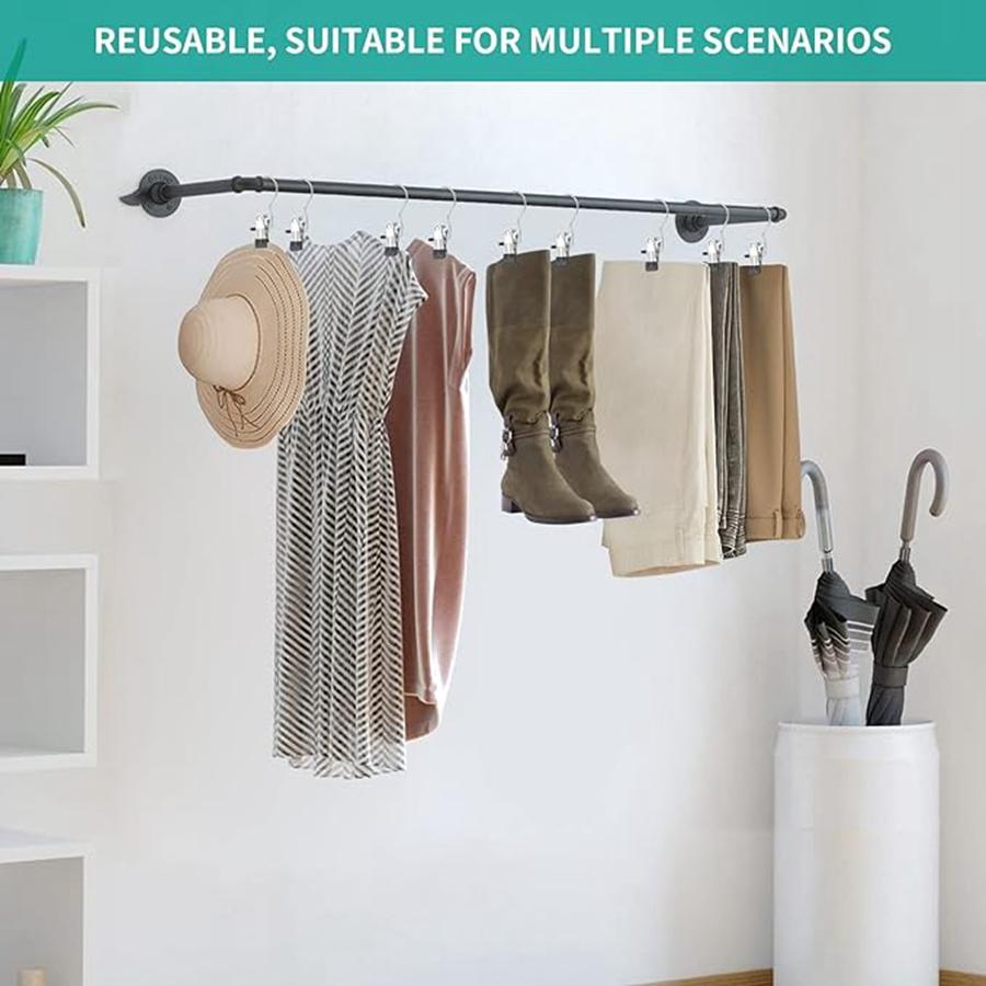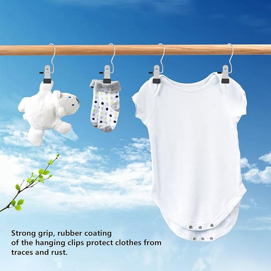 РАЗУМНЫЙ ДИЗАЙН ВЕШАЛКА ДЛЯ БОТИНКА: Крючок для подвесных зажимов имеет подходящее отверстие для крючка, подходит для большинства подвесных стержней и веревок, его нелегко упасть после подвешивания.. Эти прищепки легко открываются, а резиновое покрытие подвесных зажимов не позволяет легко потерять одежду, в то же время они защищают одежду от следов и ржавчины.