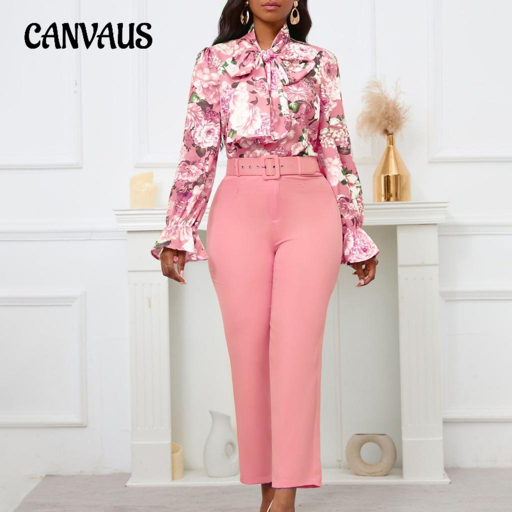 Женский комплект с рубашкой и брюками больших размеров, весенне-осенний модный галстук с принтом, топ с длинными рукавами, костюмные брюки с высокой талией, повседневный комплект брюк — купить товар онлайн с бесплатной доставкой по всему миру!
