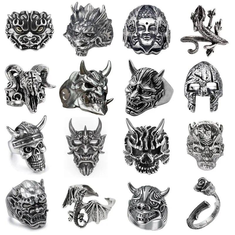 Мужское кольцо в стиле ретро-панк, скелет демона, хип-хоп, рок, локомотив, кольцо из титанового стального сплава, кольцо цвета древнего серебра, женские ювелирные изделия — купить товар онлайн с бесплатной доставкой по всему миру!