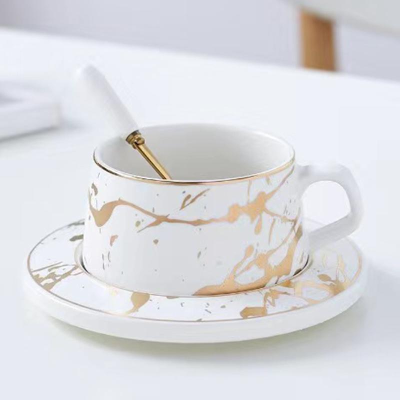 Классическая мраморная кофейная чашка в скандинавском стиле, набор из двух предметов, большая чашка для завтрака, кофейная чашка, керамическая чашка для воды, чашка для молока
