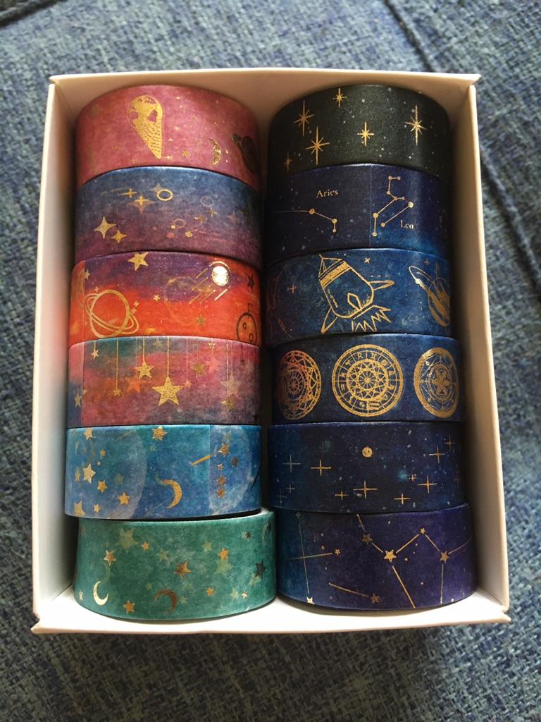 12 шт./кор., лента со звездами, планетой Васи, золотая фольга, маскирующая лента, кавайная декоративная клейкая лента, наклейка, скрапбукинг, дневник, канцелярские принадлежности — купить товар онлайн с бесплатной доставкой по всему миру!