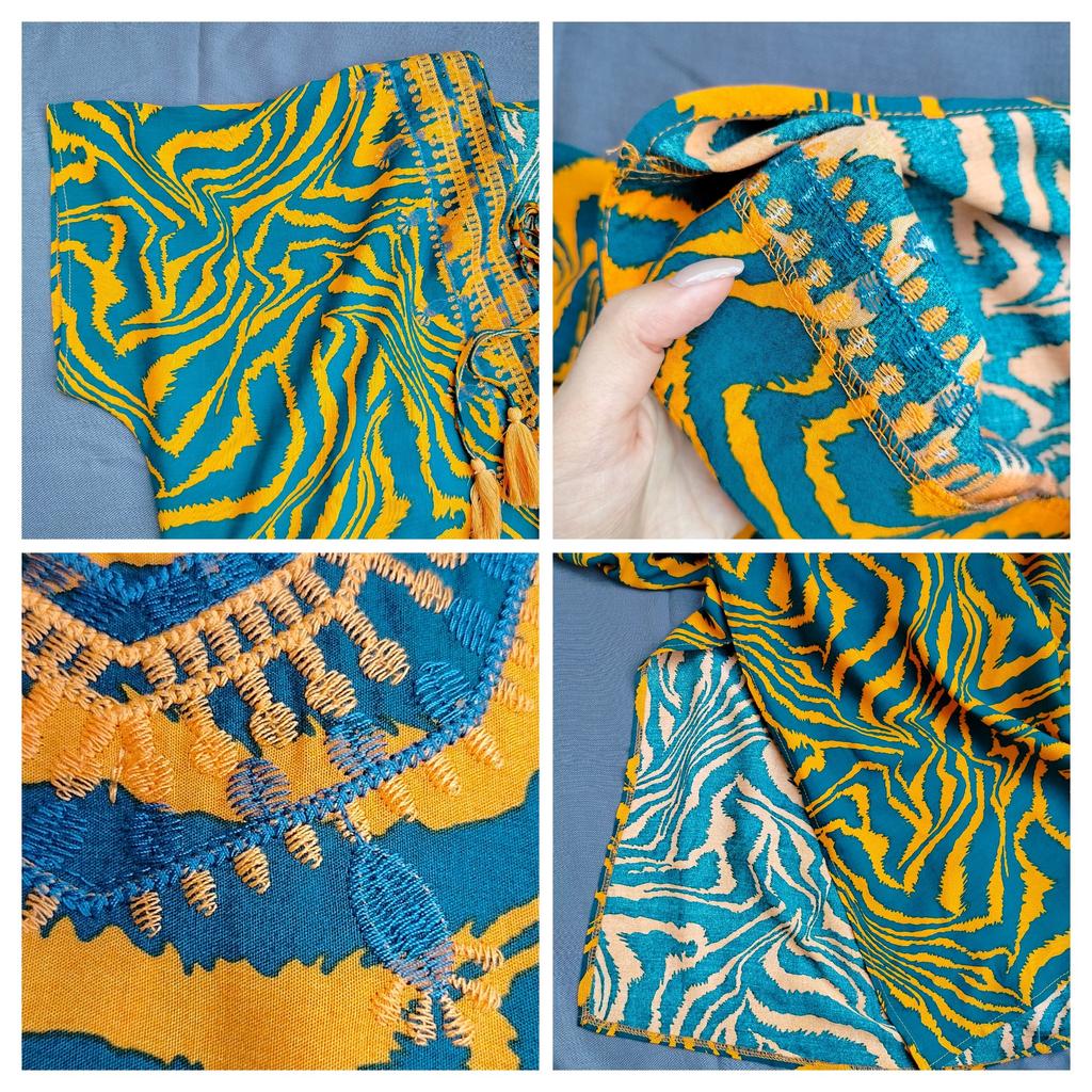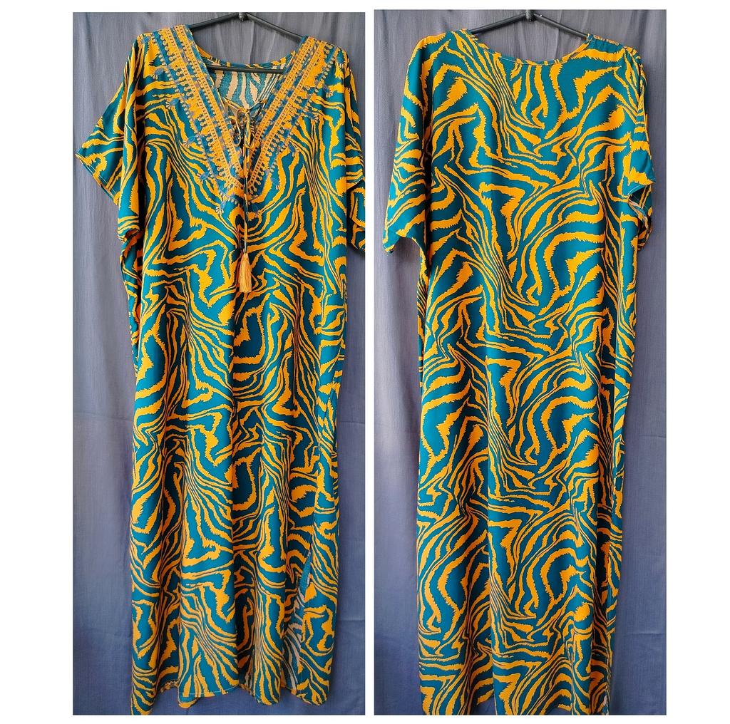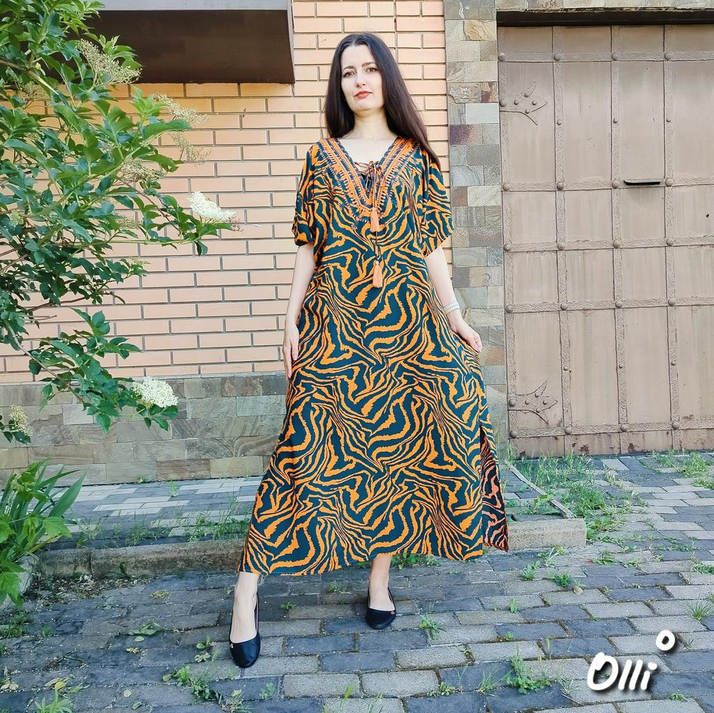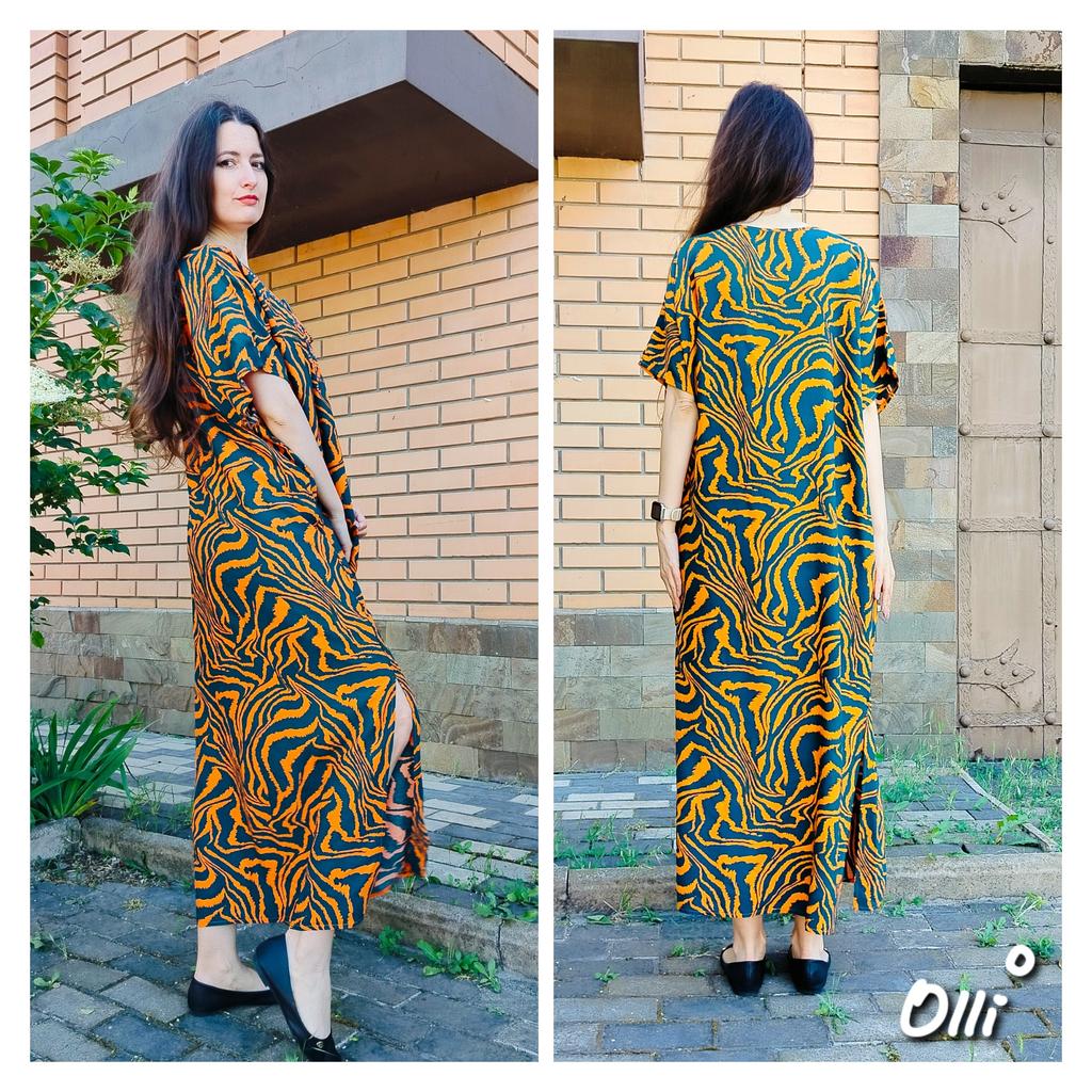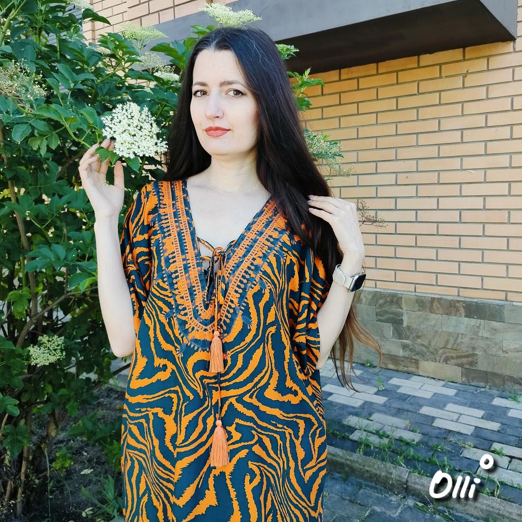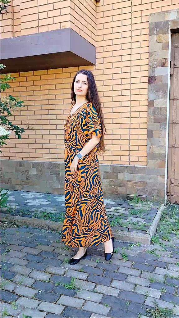 ДЛИННОЕ ПЛЯЖНОЕ ПЛАТЬЕ С АНИМАЛИСТИЧЕСКИМ ПРИНТОМ 🧡💚 + видео Хочу показать яркое платье для пляжа, хотя в городской жизни тоже уместно. Привлекает пестрый анималистический принт, шнуровка на груди и разрезы по бокам Посылка пришла в Украину за 35 дней. Упаковано в почтовый пакет, также был индивидуальный. Платье прямого фасона с короткими рукавами. Платье длинное. Самая красота - это вышивка и вырез Расцветка единая - оранжевый и темный изумрудный Ткань платья тонкая, не просвечивает. На бирке ткань указано: 100% вискоза Вырез на груди глубокий. Здесь шнуровка с кистями из ниток. И в качестве декора красивая вышивка. Это не аппликация, а это машинная вышивка. Сделана аккуратно и без косяков, не колется Рукава короткие, просторные - это единое целое с платьем Низ, юбка прямая. По бокам есть 2 разреза. Но за счёт фасона юбки, они не сильно оголяют ножки, не глубокие Все швы нормальные. Особо без торчащих ниток и других дефектов. Традиционно зарисую замеры. Платье в едином размере На мои параметры 85-66-93 и рост 173 платье свободное. Запас большой, так что по можно брать и на размеры много б0льшие. А ещё мне понравилась длина. На 173 длина практически до пола Платье красивое! Мне нравится эта вышивка с растительными мотивами и яркая цветовая гамма. Свободное, легкое так и создано для отдыха БУДЬТЕ ВСЕГДА КРАСИВЫ 👸
