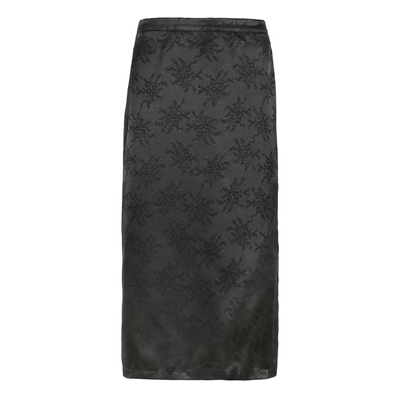 Женские черные длинные юбки, винтажная атласная юбка с цветочным принтом, женские юбки с высокой талией и разрезом по бокам, летние повседневные наряды