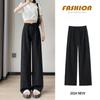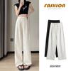 Широкие брюки с пластинчатыми пуговицами для женщин, весенние и летние жаккардовые атласные прямые брюки в национальном стиле с высокой талией, повседневные драпированные брюки