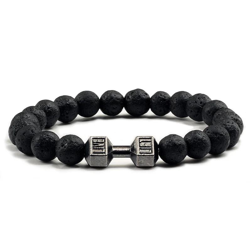 Браслет из натурального вулканического камня, мужские матовые черные белые бусины, очаровательные браслеты с гантелями, женские браслеты со штангой, украшения для фитнеса — купить товар онлайн с бесплатной доставкой по всему миру!