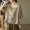 Женские топы, хлопково-льняная блузка с рюшами и рукавами на пуговицах, женская модная однотонная летняя женская одежда с вышивкой, винтажная одежда