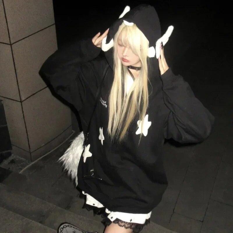 Deeptown Kawaii толстовки женские японские Y2k Star Girl розовый Harajuku готический ангел толстовки на молнии большие размеры Cutecore топы в стиле Лолита — купить товар онлайн с бесплатной доставкой по всему миру!