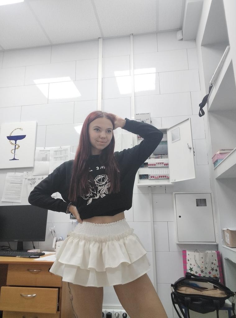 Юбка классная, материал приятный и есть защитные шортики. Без ремня большевата (извините за грязное зеркало)