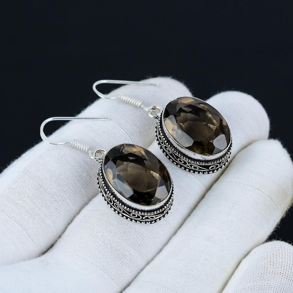 Серьги с дымчатым топазом, серьги из стерлингового серебра 925 пробы, серьги ручной работы, антикварные серьги, драгоценный камень дымчатый топаз, подарки для мамы, украшения для нее