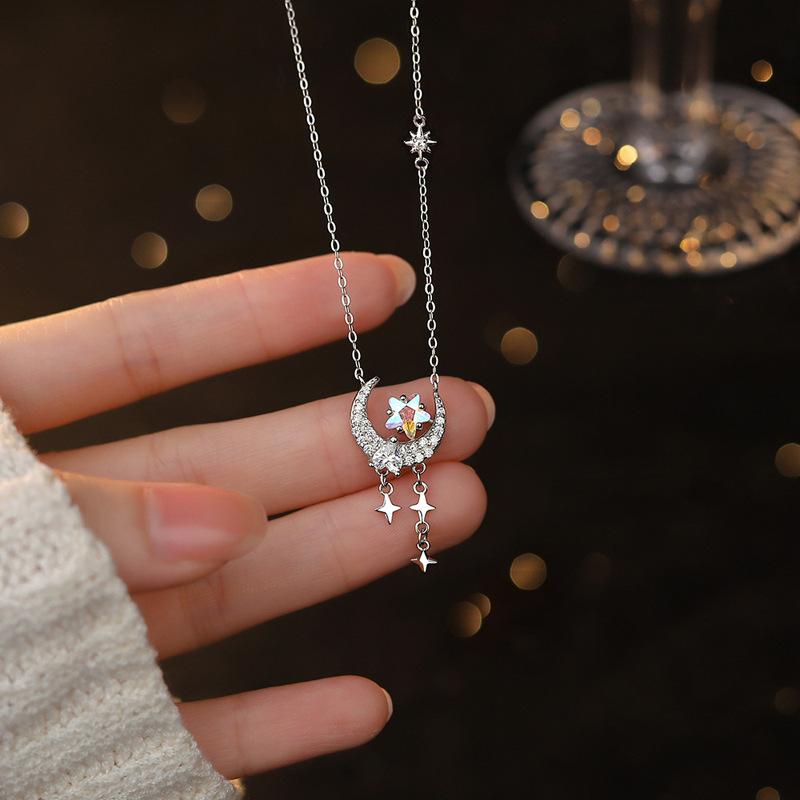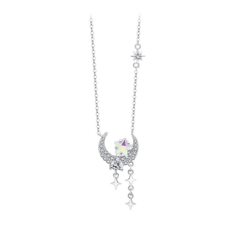Ожерелье из стерлингового серебра S925 с лунным всплеском, ожерелье из лунного камня, светлый роскошный кулон в форме сердца, дизайн, циркон, звезда, луна, цепочка на ключицу