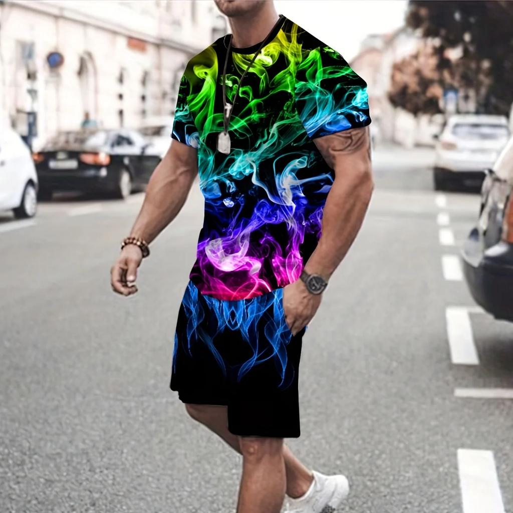Мужской летний повседневный комплект из двух предметов с 3D-дизайном в виде пламени