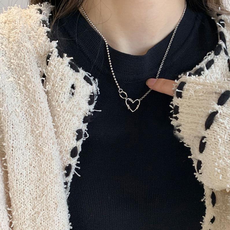 Ожерелье из стерлингового серебра S925, милый крутой стиль, цепочка на ключицу, модная европейская и американская мода, хип-хоп, ретро, полое ожерелье в форме сердца