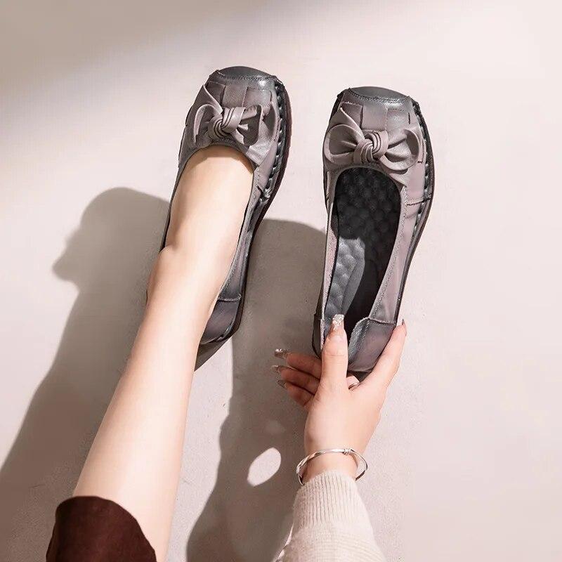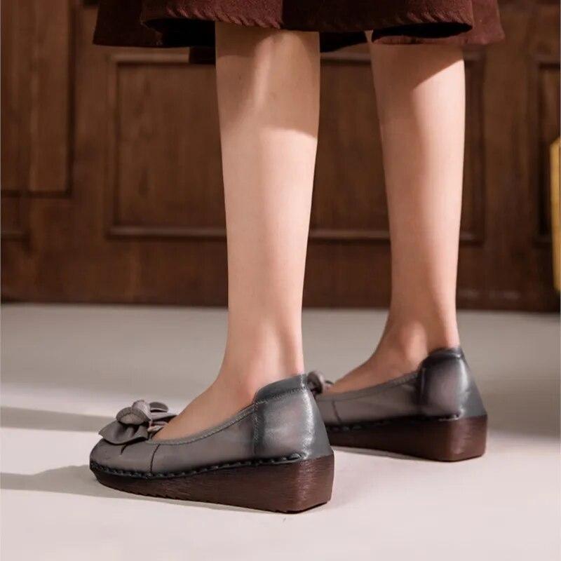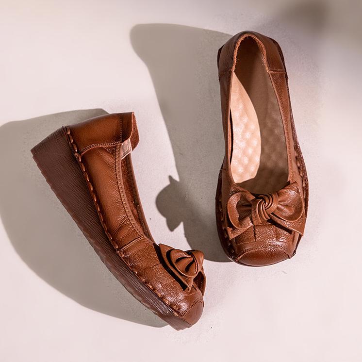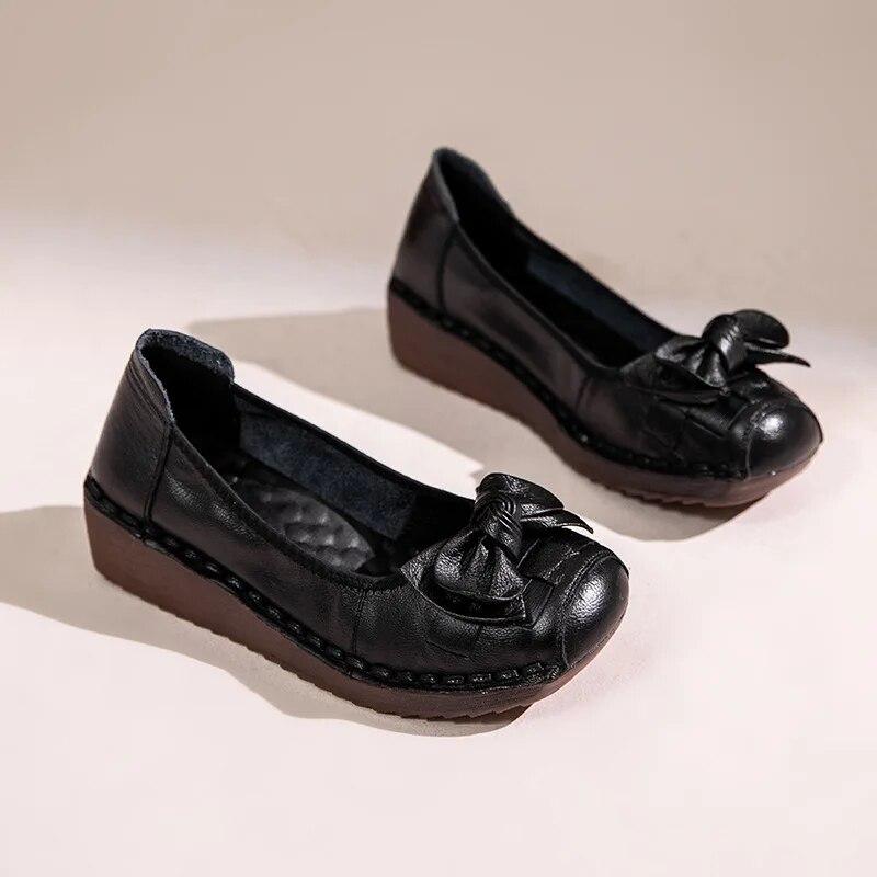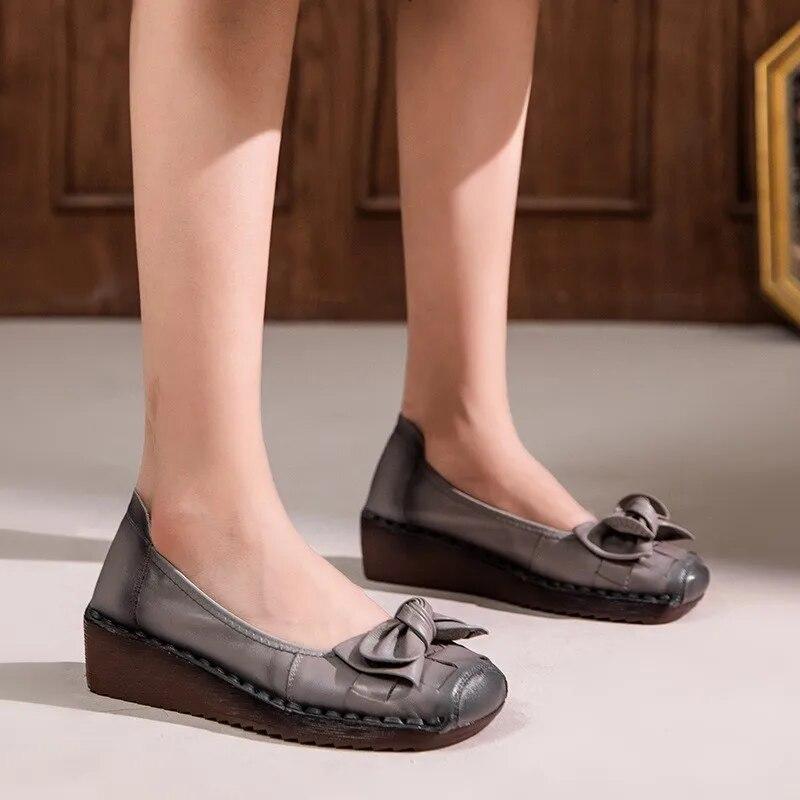 Johnature Женская обувь из натуральной кожи в стиле ретро, повседневная женская обувь на мягкой подошве с круглым носком и галстуком-бабочкой, универсальные туфли на танкетке