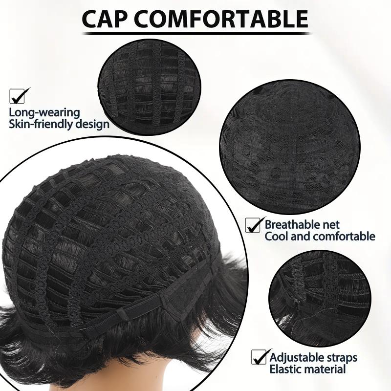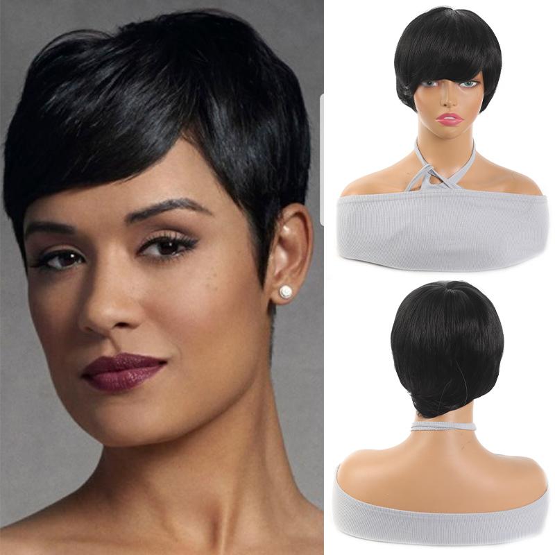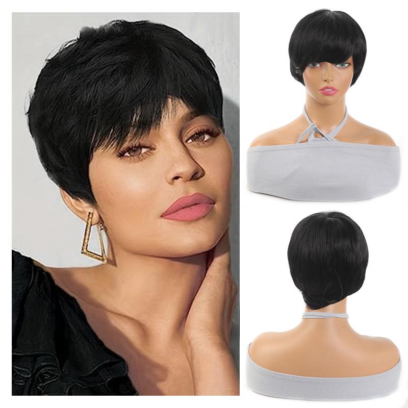 Черный короткий прямой парик для девочек, синтетический короткий прямой парик для повседневного ношения, естественный и удобный.