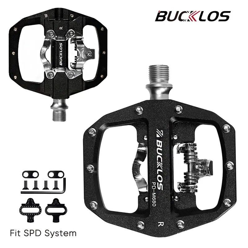 Педали BUCKLOS MTB, двойная функция, велосипедная педаль MTB, плоская платформа с блокировкой, подходит для системы SPD, нескользящая педаль для горного велосипеда с шипом