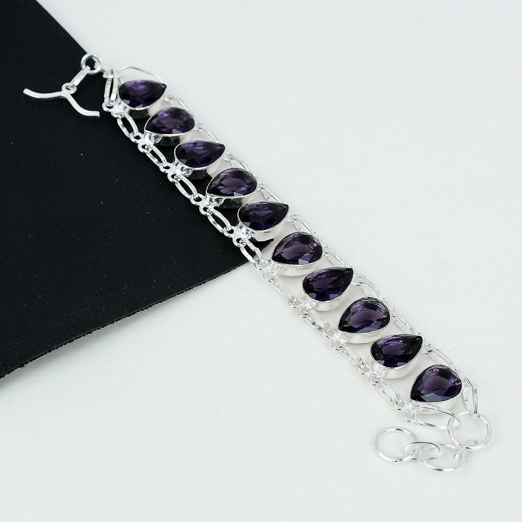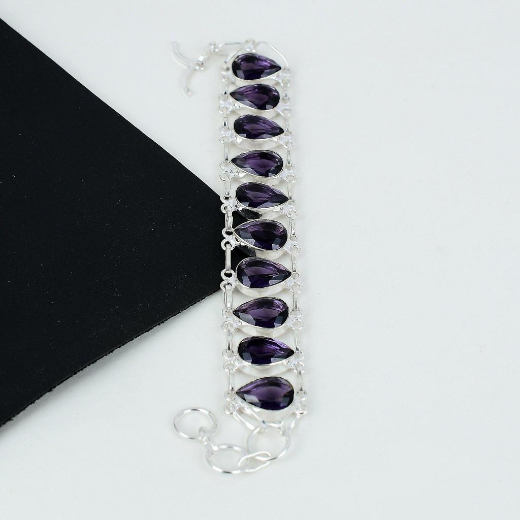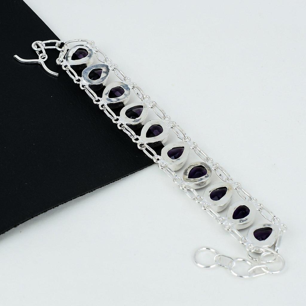 Браслет с аметистом Фиолетовый аметист Драгоценный камень Браслет ручной работы из стерлингового серебра 925 пробы Браслет с фиолетовым аметистом для подарка Браслет унисекс для нее