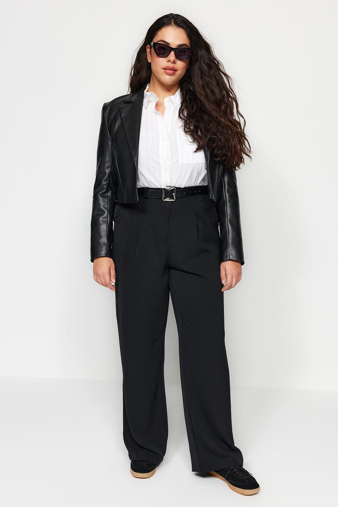 Женские брюки больших размеров, модные новые сезонные темно-синие плиссированные тканые брюки с высокой талией