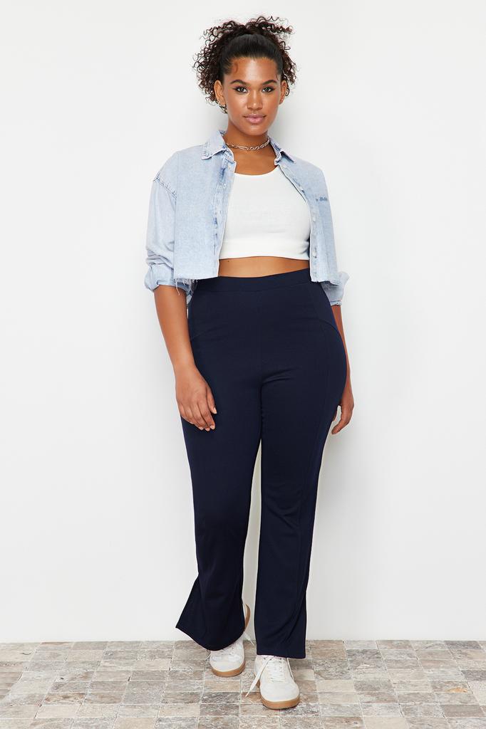 Женские брюки больших размеров, модные новые сезонные темно-синие трикотажные брюки со строчкой