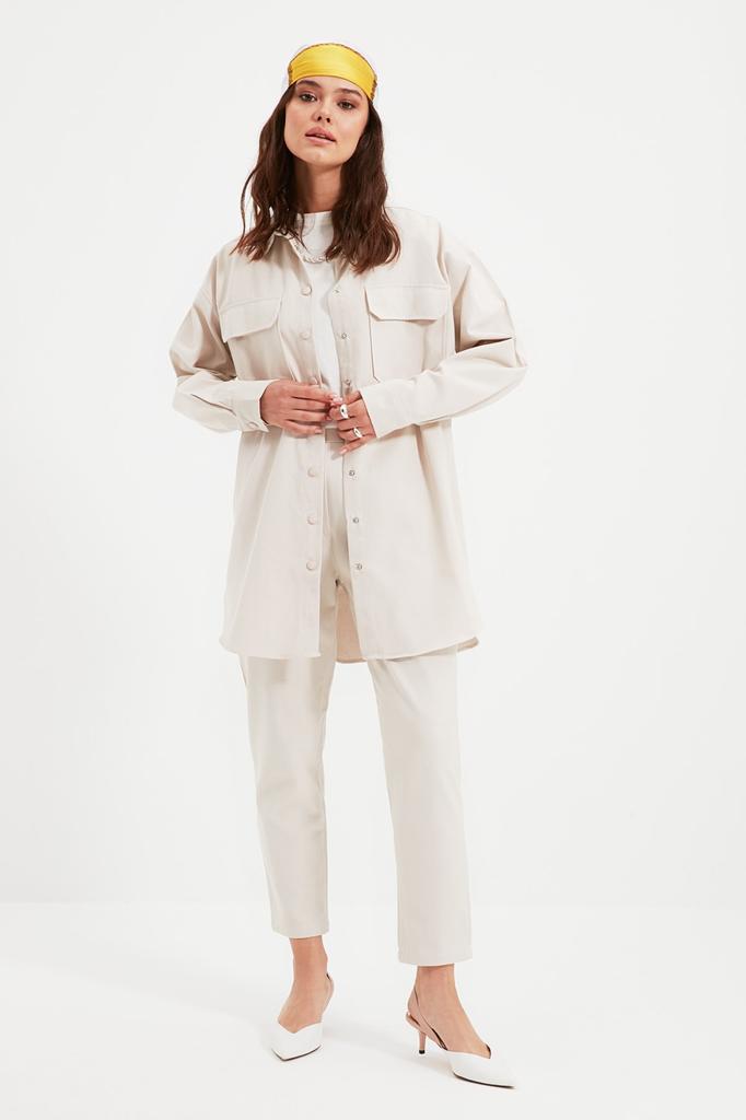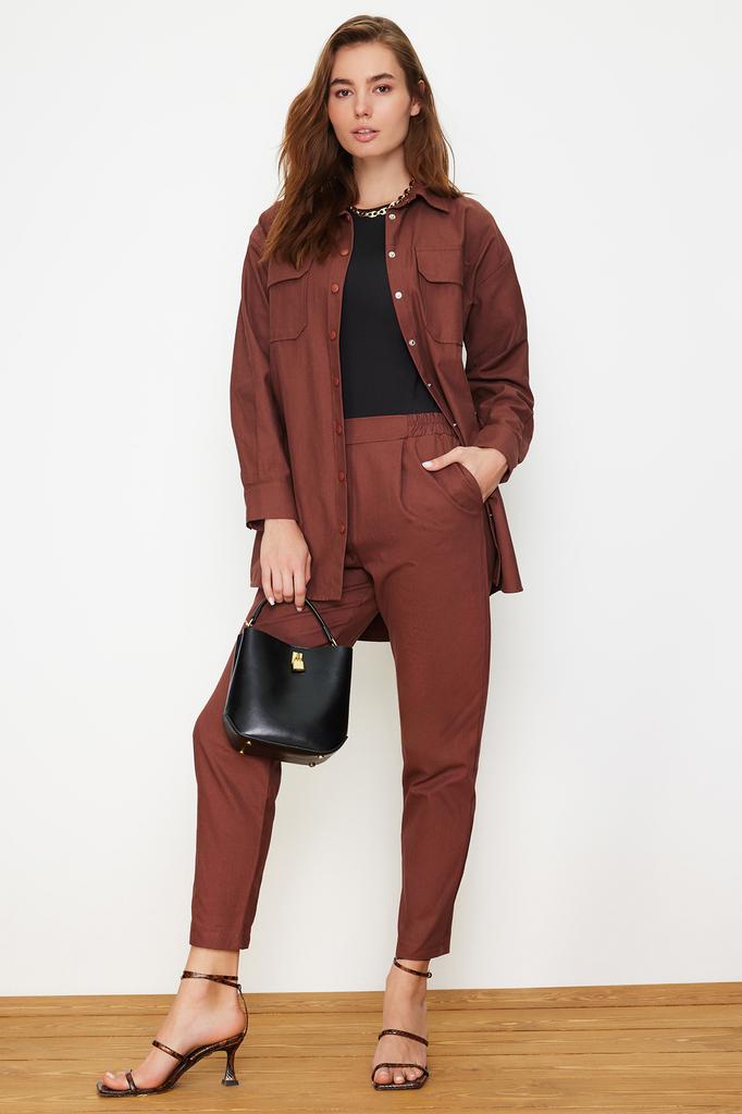 Женский комплект из хиджаба с низом и верхом, модный новый сезон, темно-коричневый, с карманами и детальной застежкой, рубашка-брюки, тканый костюм