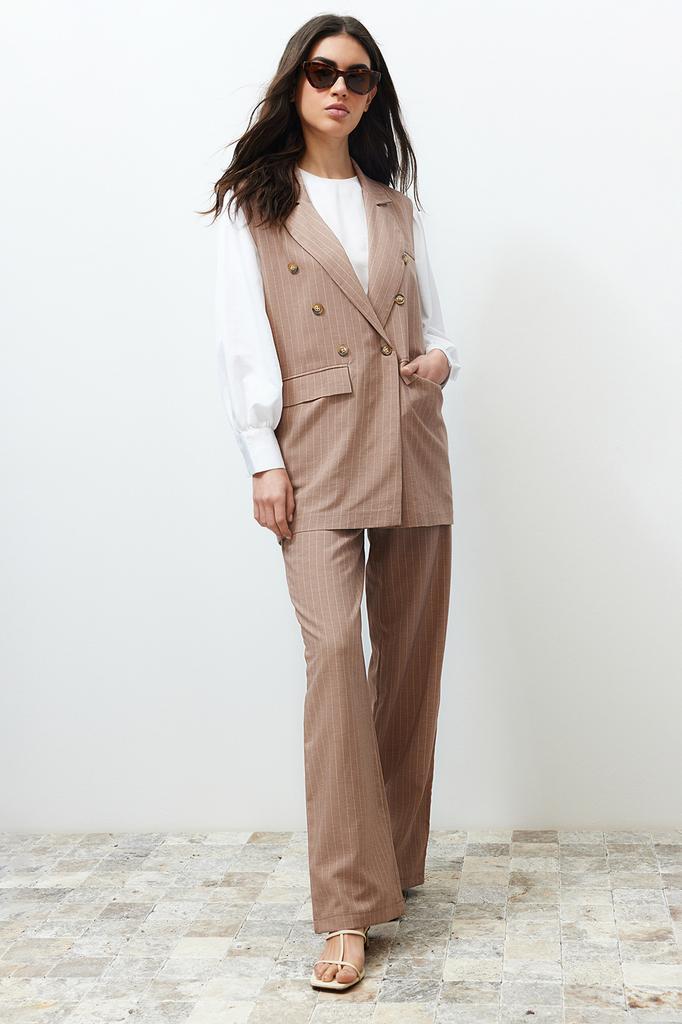 Женский хиджаб, комплект снизу-верха, модный новый сезон, жилет из норковой ткани в полоску, брюки, комплект с тканым верхом снизу