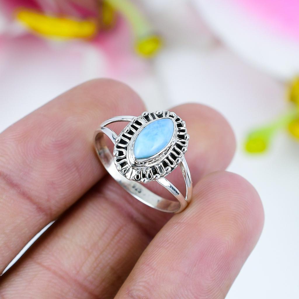 Кольцо в подарок из чистого серебра 925 пробы с ларимаром Natural Republic S.8 B1s14