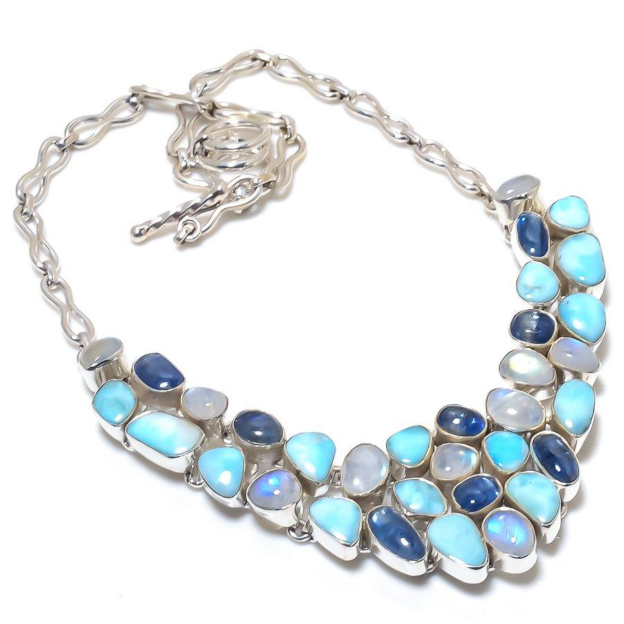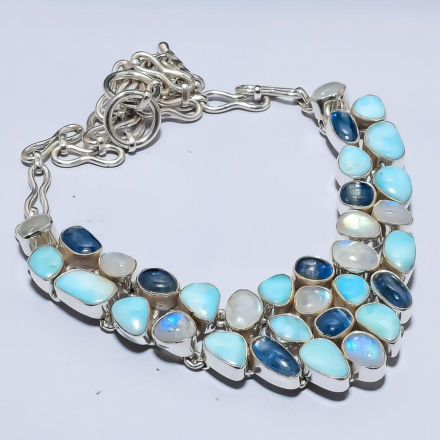Ожерелье из натурального ларимара, кианита, стерлингового серебра 925 пробы, 18 дюймов, i3H62