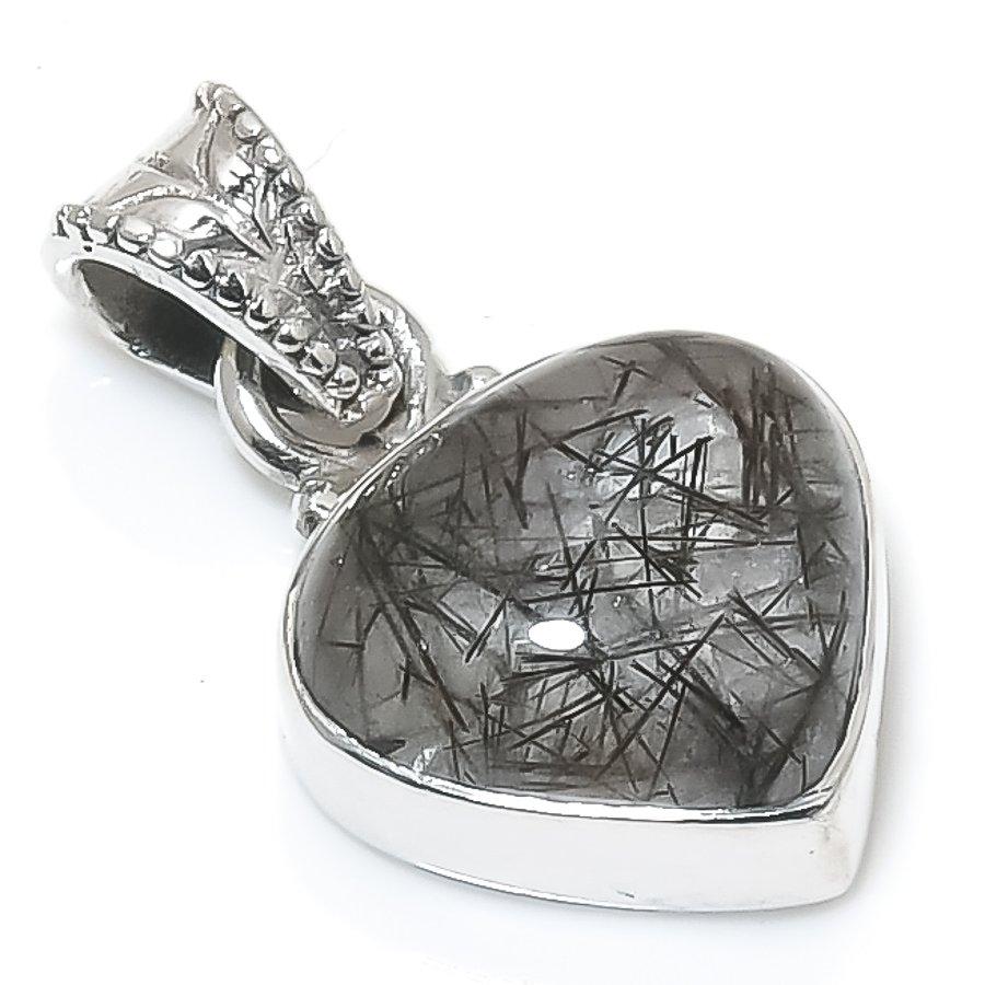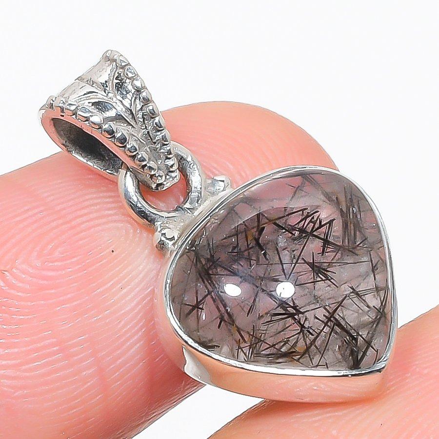 Подвеска из чистого серебра 925 пробы с натуральным черным рутилом ручной работы 1 дюйм u7C23