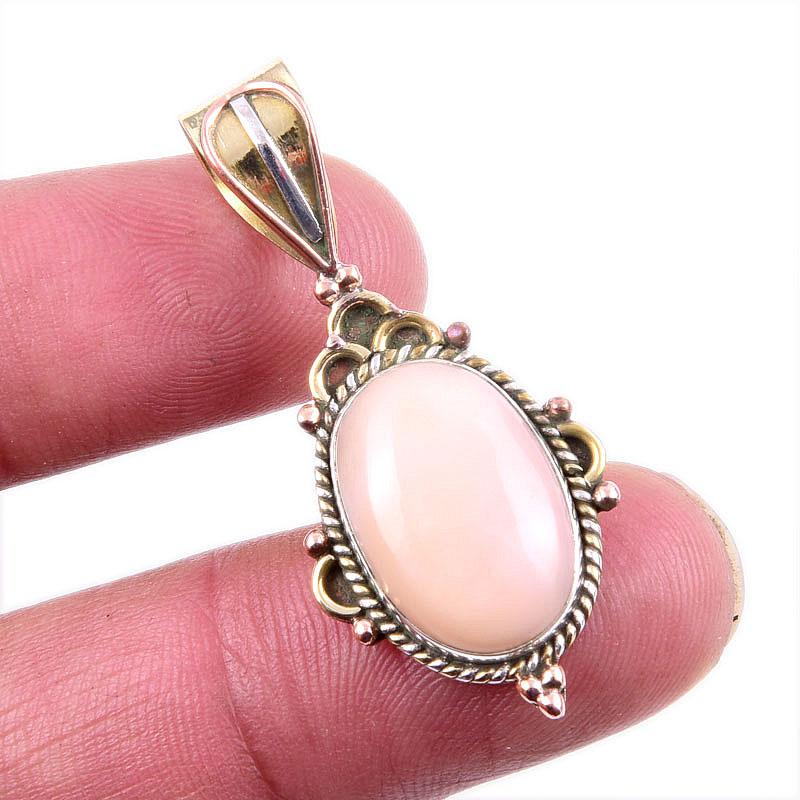 Подвеска из натурального розового опала из стерлингового серебра 925 пробы в двух тонах 1,5 дюйма y1k21