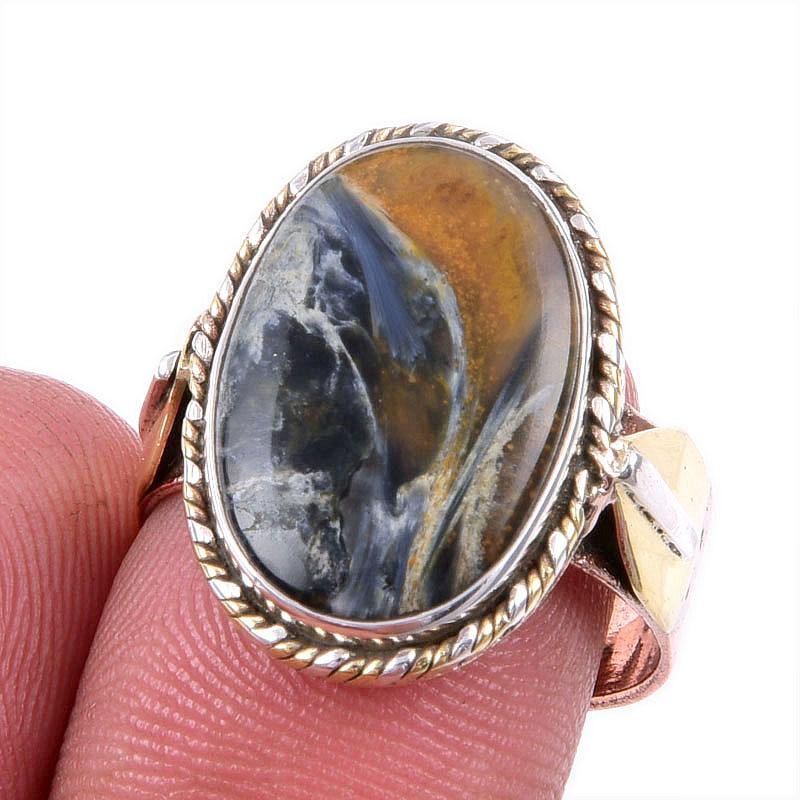 Натуральный драгоценный камень Питерсит 925 пробы, ювелирное изделие из цельного серебра, двухцветное кольцо S.8.5US V9n97