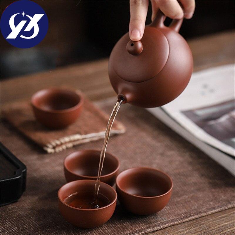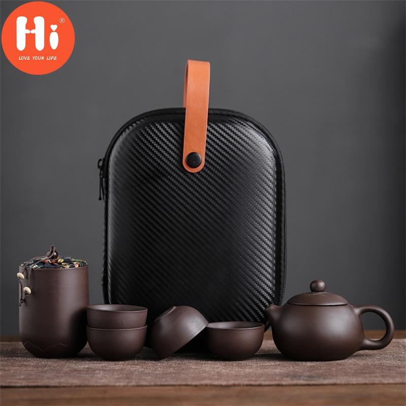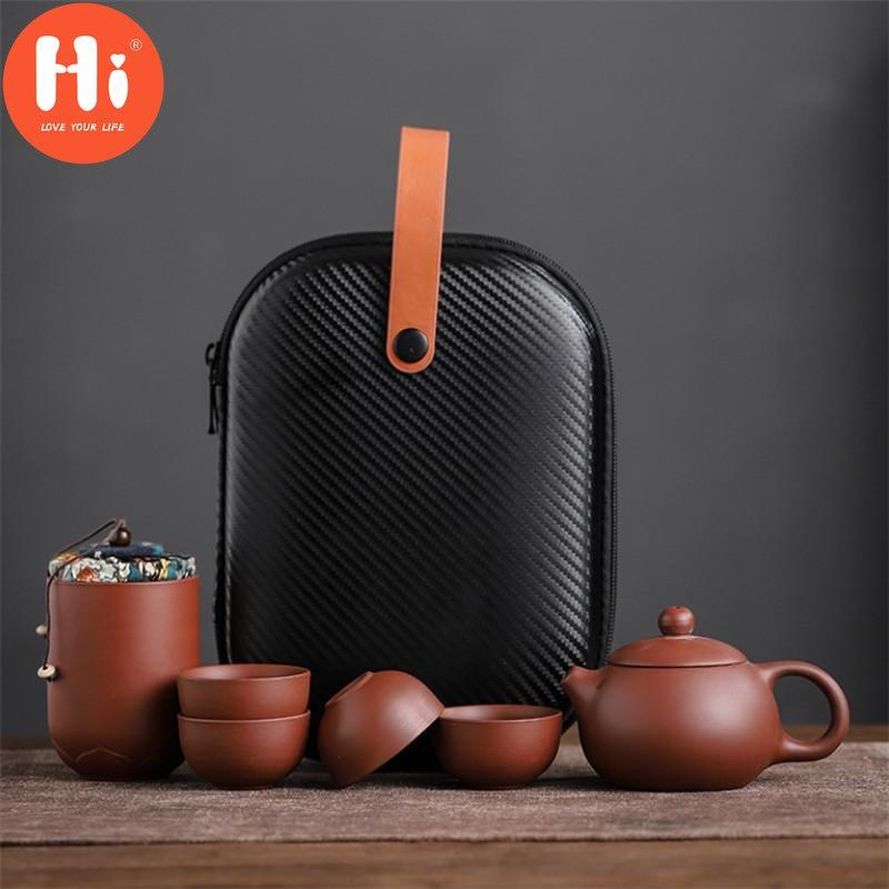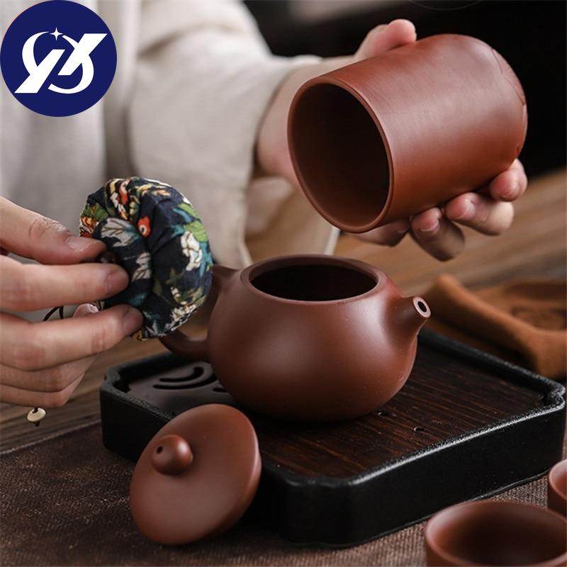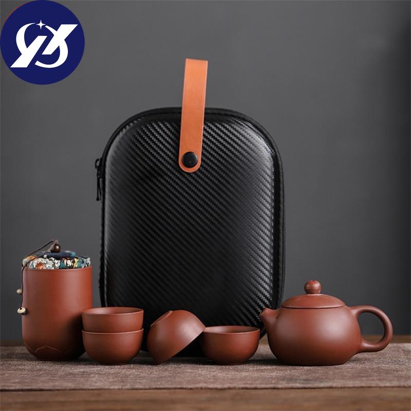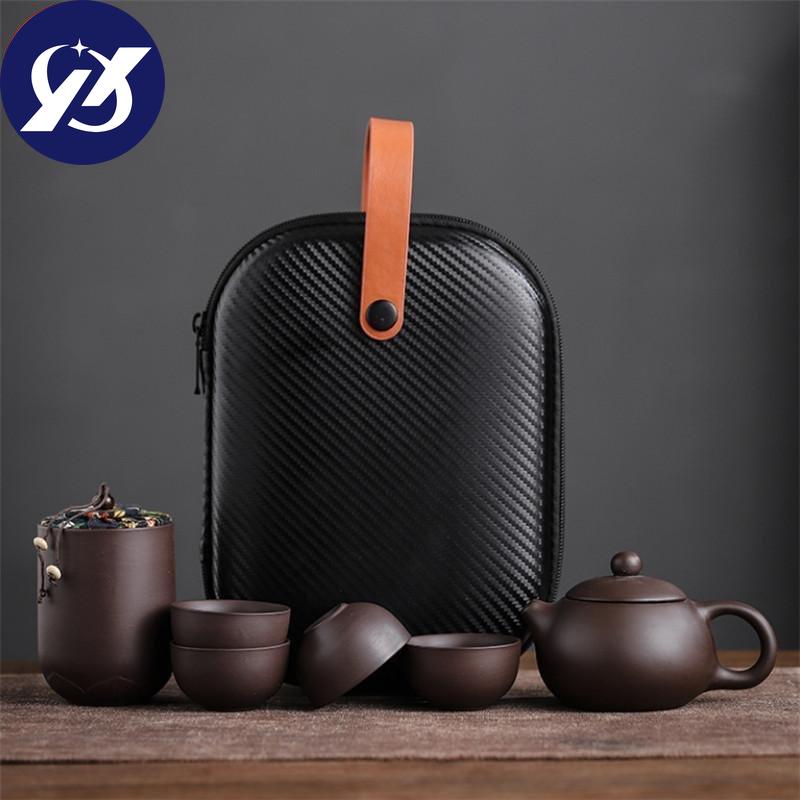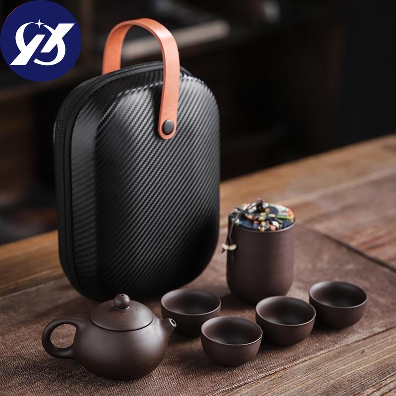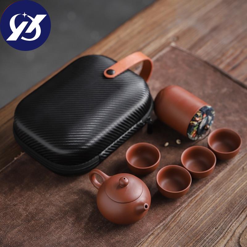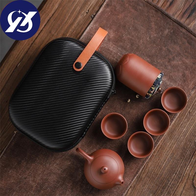 Чашки из фиолетовой глины, керамический портативный чайный набор, включающий 1 горшок + 1 чайницу + 4 чашки, чайник для путешествий на открытом воздухе, подарки кунг-фу, гайвань