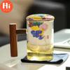 Креативная стеклянная чашка для разделения чая, керамическая чашка с фильтром, крышкой и деревянной ручкой, большая емкость, офисная кофейная кружка, посуда для напитков