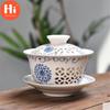 Фарфоровые полые чайные чашки синего и белого цвета, керамическая офисная чайная чаша Kung Fu Gaiwan с крышкой, 160 мл