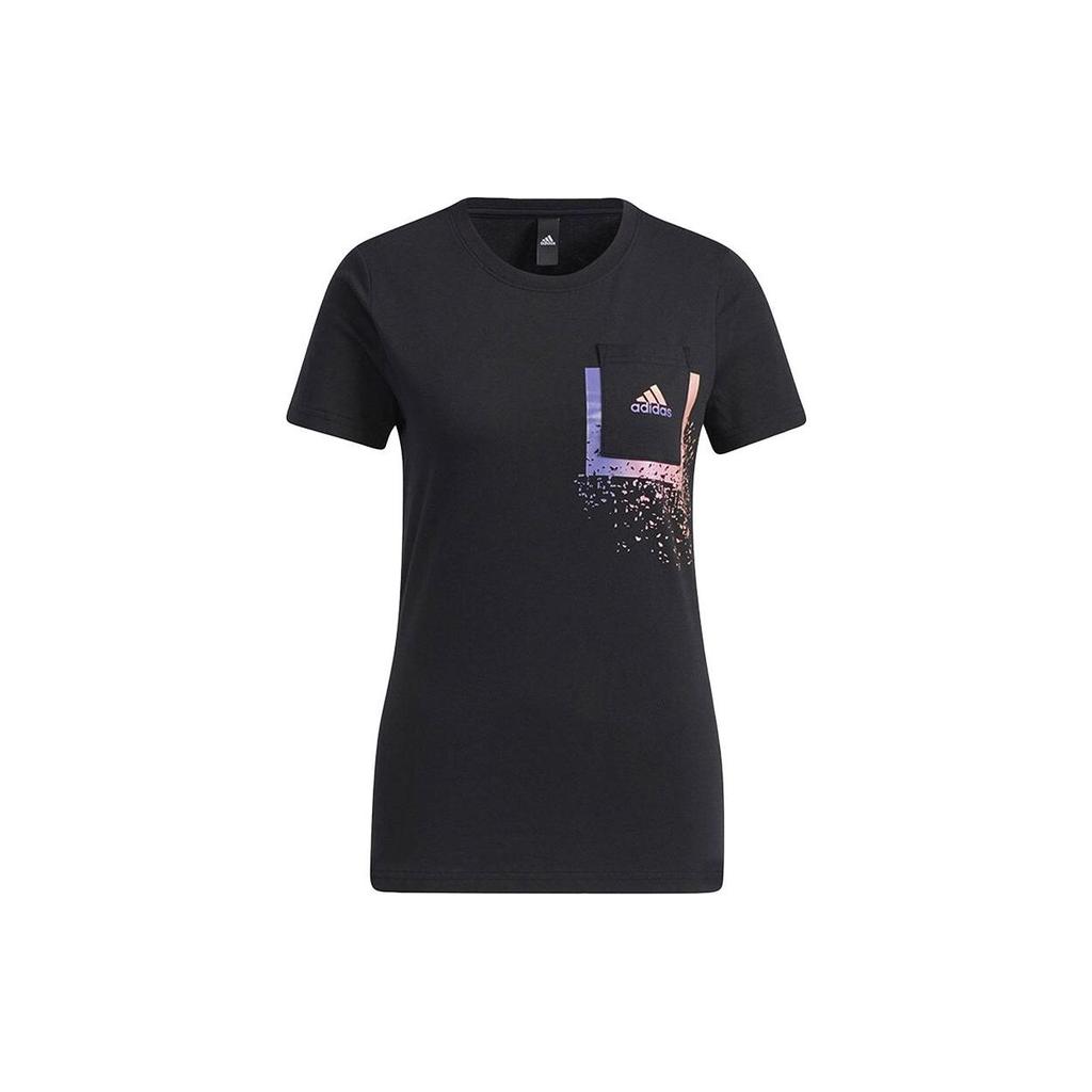 Adidas Однотонная футболка с круглым вырезом и логотипом, женские топы, черный GP0688
