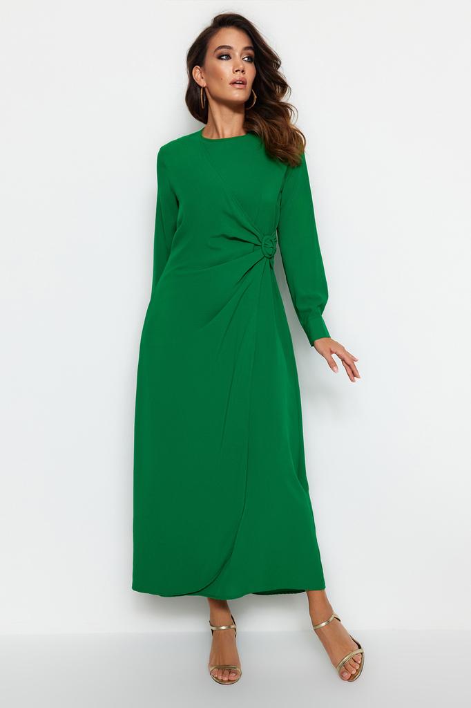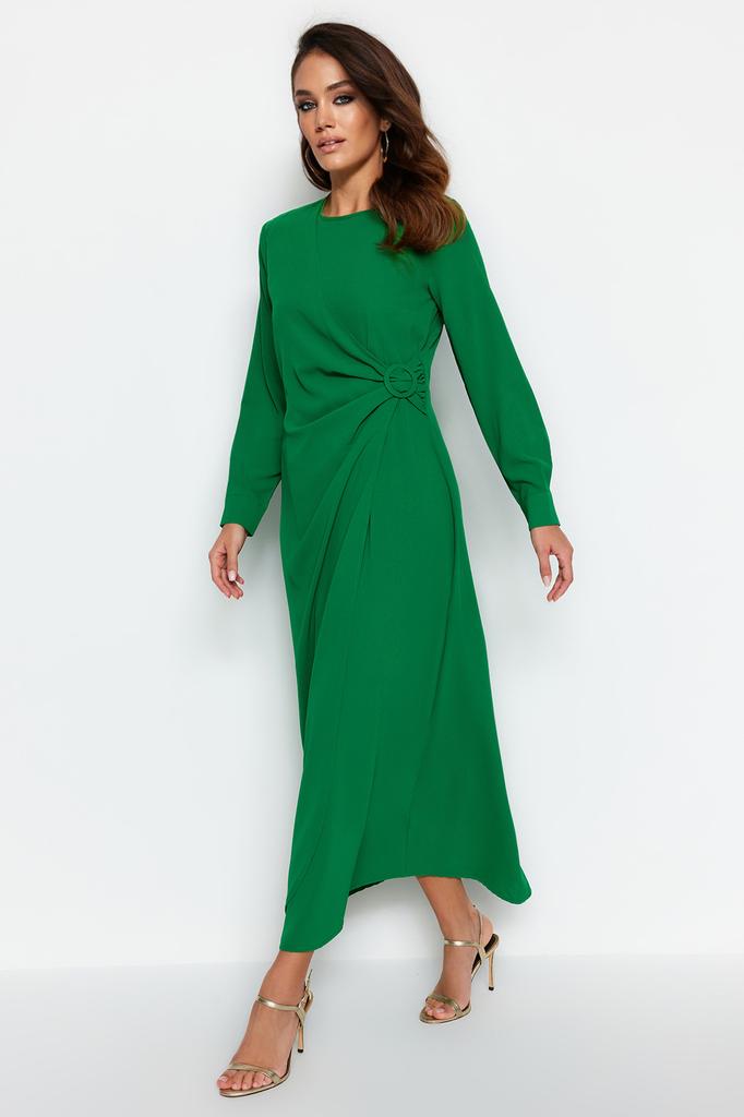 Женское платье-хиджаб, новый сезон, модные зеленые аксессуары, детальное тканое платье Aerobin