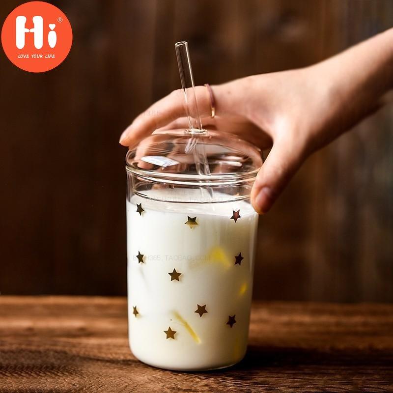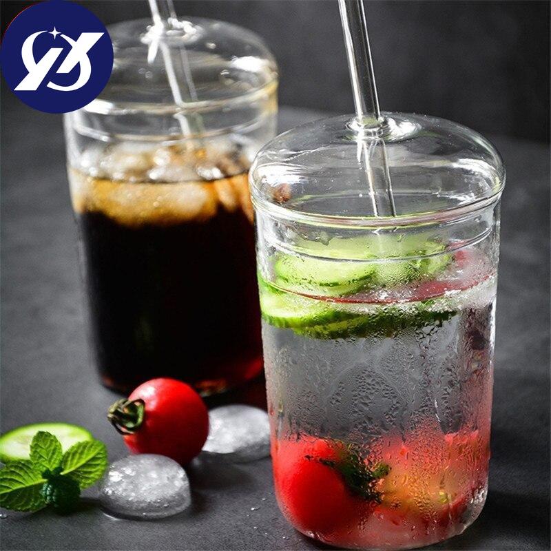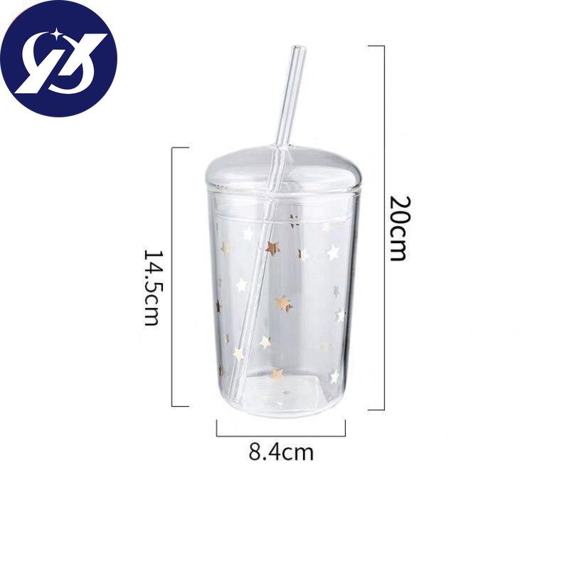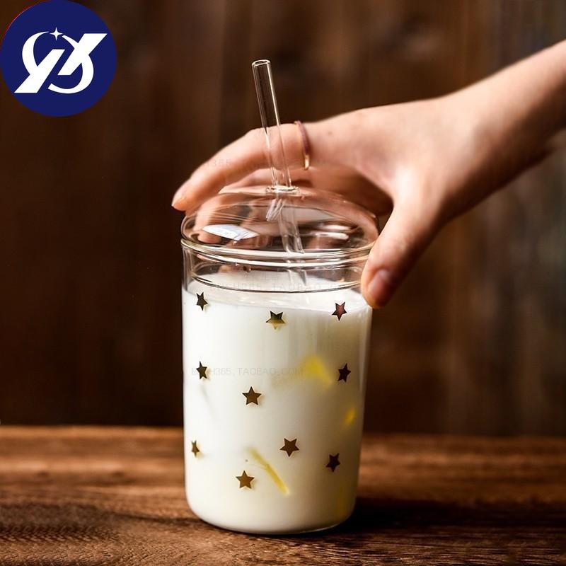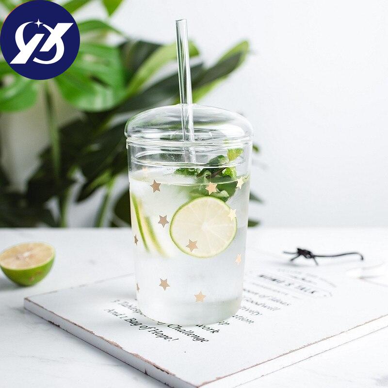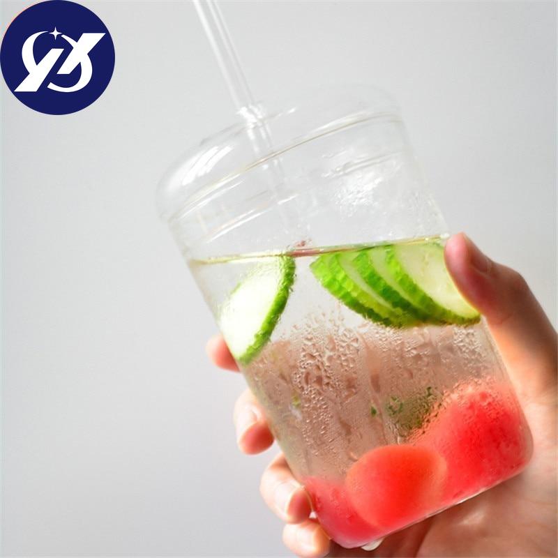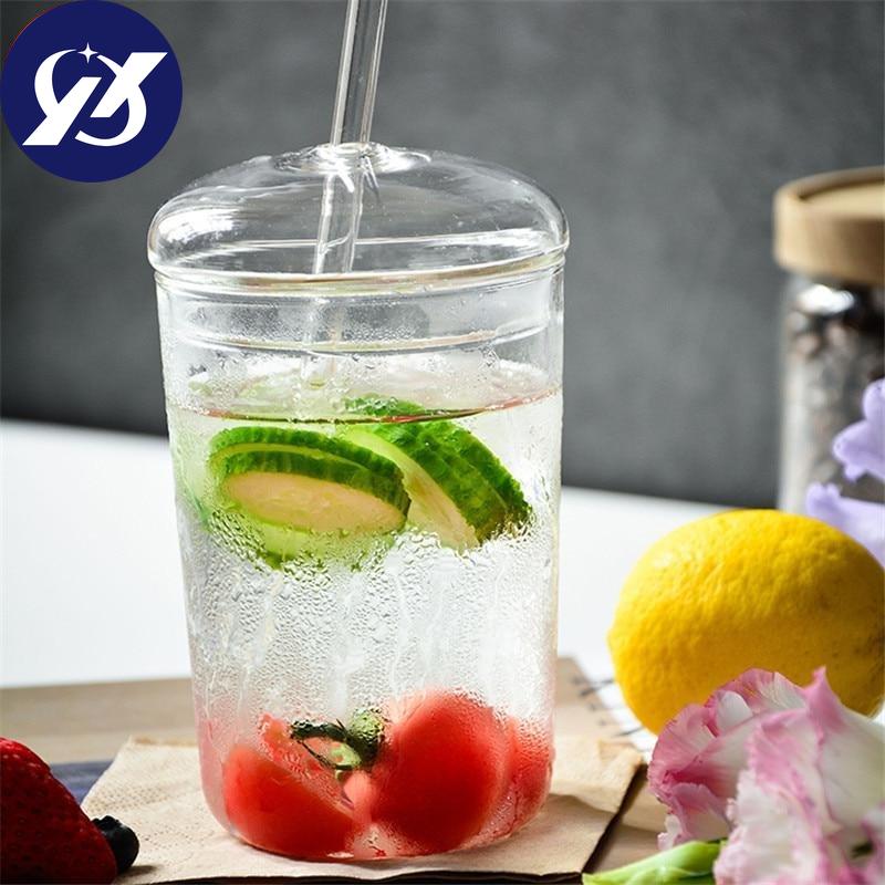 Термостойкая стеклянная офисная чайная чашка, креативная прозрачная кофейная кружка с крышкой и соломинкой, бытовая чашка для молока, сока, дорожная посуда для напитков